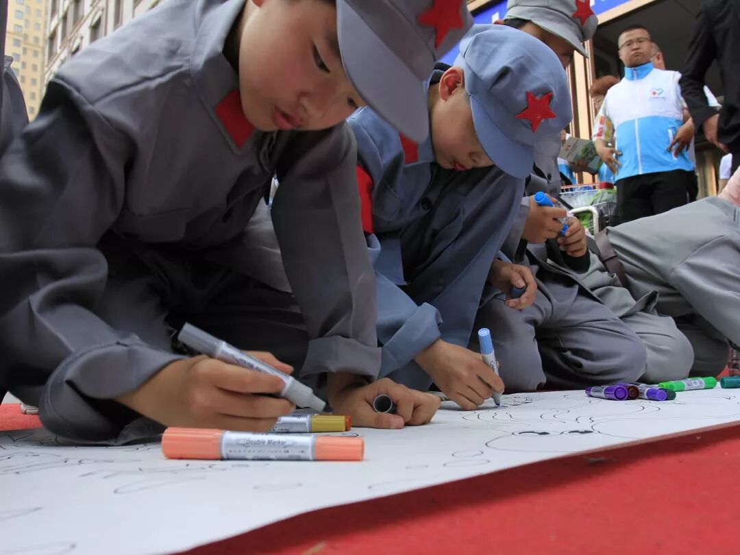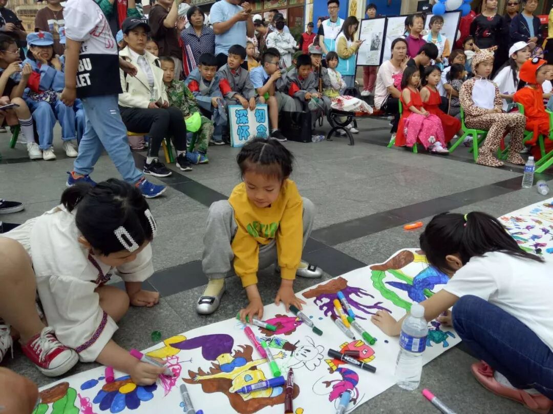 小朋友们在现场绘画老师的指导下为画卷涂上五彩斑斓的色彩,为患儿们画出一个五彩的未来