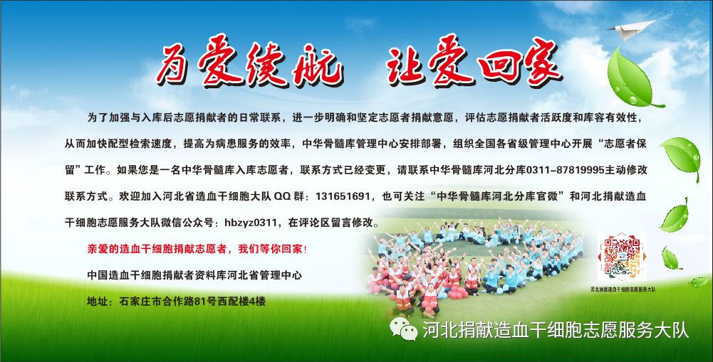 3. 曾经预留过造血干细胞信息的志愿者,如果你由于通讯变更等原因与我们失联,请点击下方图片查看文章,欢迎回家!